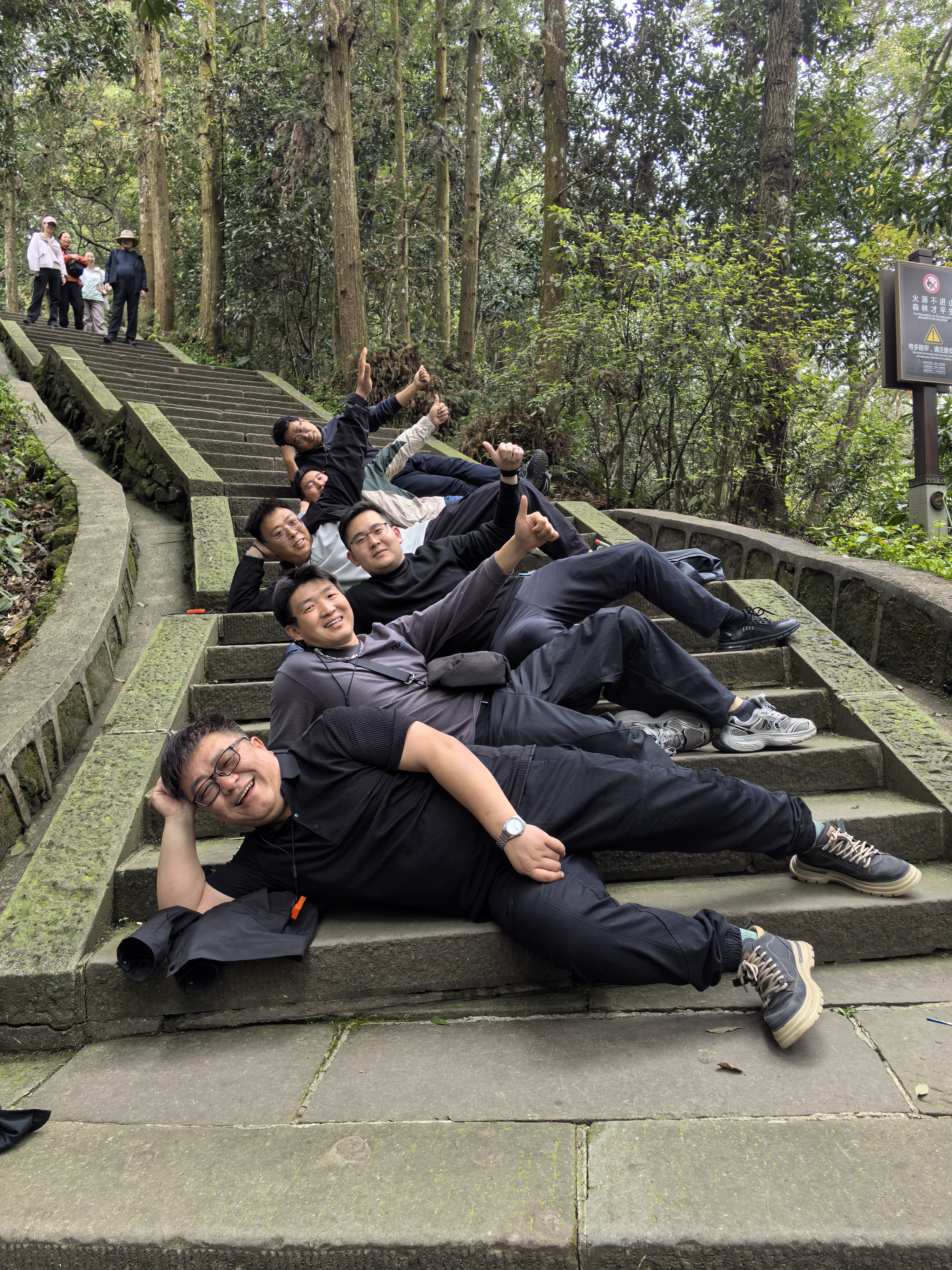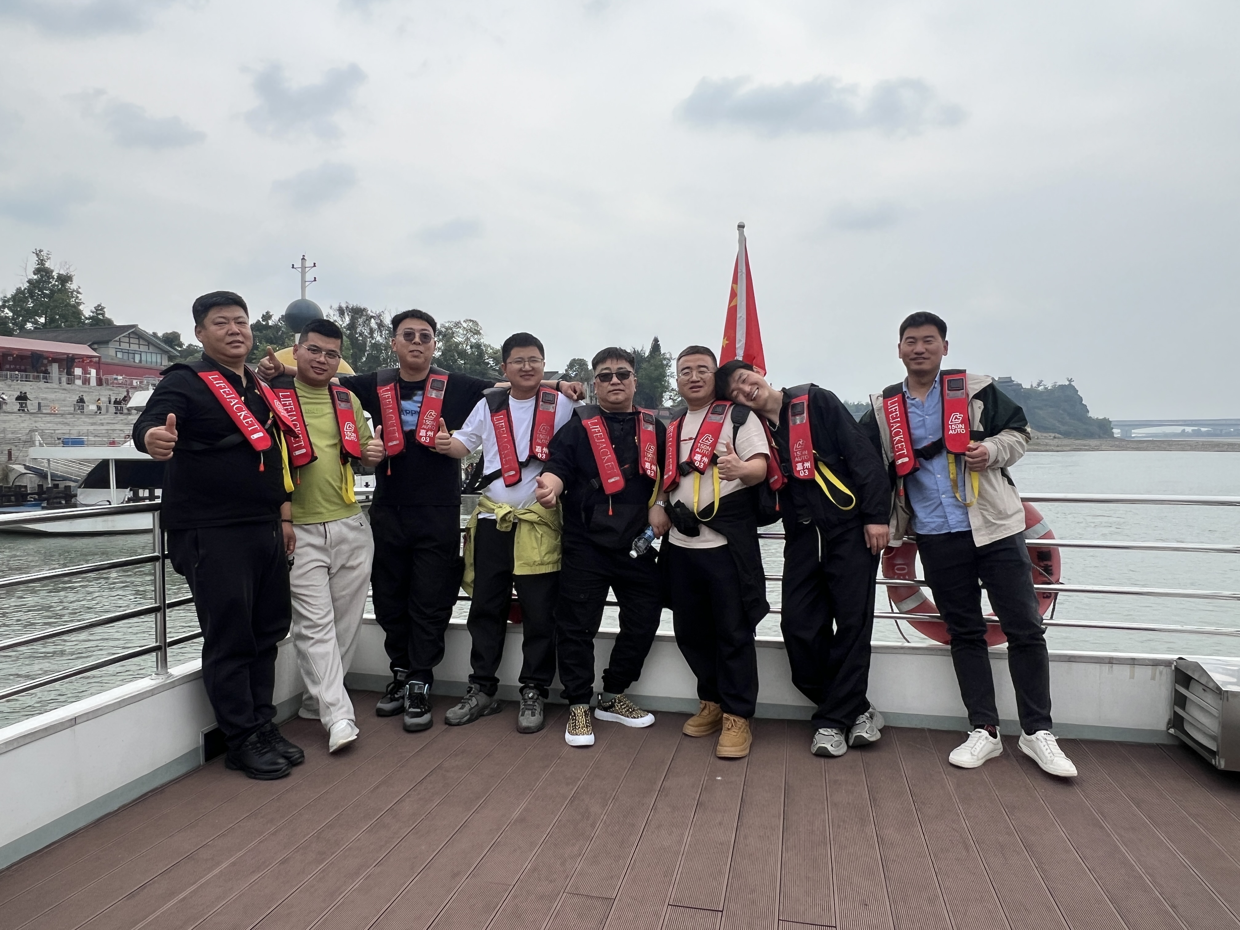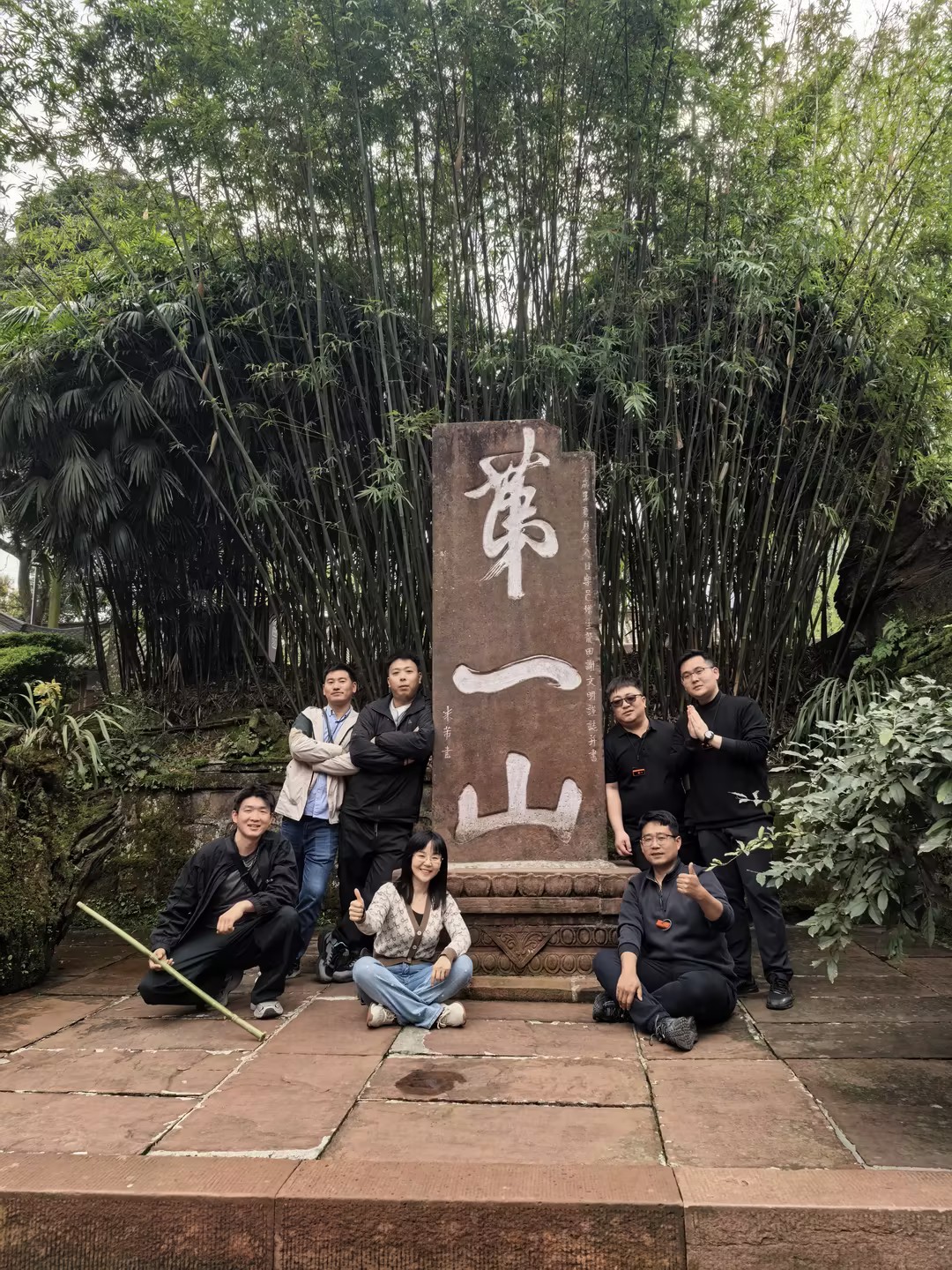 第三天,一行人前往乐山。苏稽古镇的青石板路上,三五成群,边走边拍,边尝边聊,烟火气中满是欢声笑语。这群在工作中专业严谨、一丝不苟的晨天优秀员工,此刻展现出他们生活中的另一面——开朗、有趣、懂得享受生活。在乐山大佛,他们仰望那千年守望的慈容,心中油然升起一份敬畏与从容。大家纷纷合影留念,将这份宁静与庄严收入记忆。