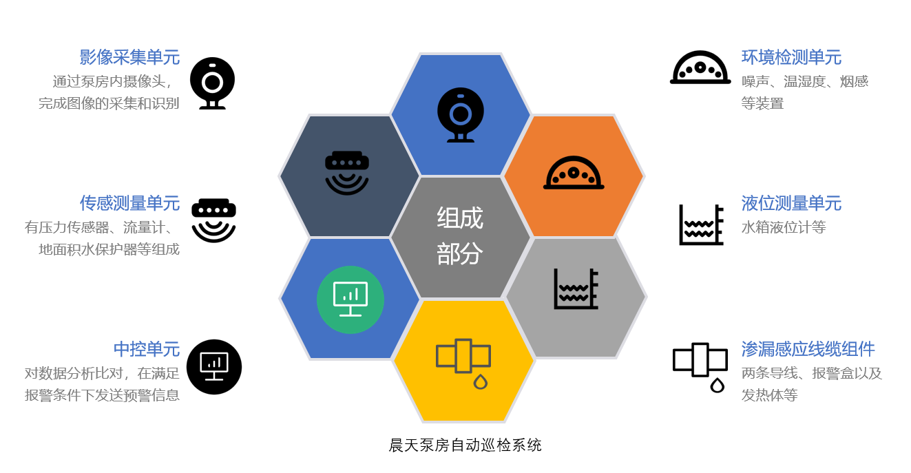为了加强泵房自动巡检系统的兼容性与应用性,晨天采用更直观、更标准、易扩展的模块设计方式进行设计,可根据管理单位的实际需求定制方案,使自动巡检系统快速落地,帮助管理单位快速实现泵房运维管理的科学化,简易化与高效化!
